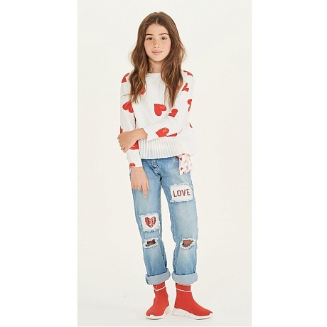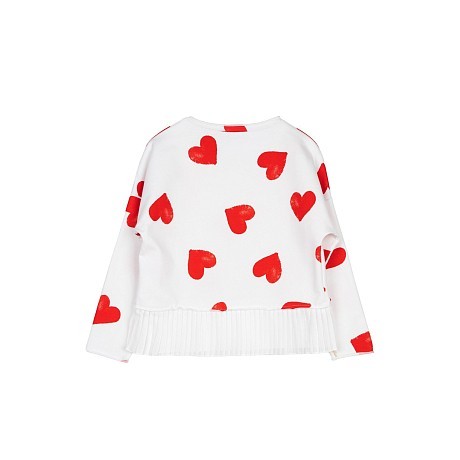 Джемпер для девочек Elsy – это идеальный выбор для маленьких модниц! Изготовленный из 95% хлопка и 5% эластана, он украшен очаровательными красными сердечками на белом фоне. Нежная ткань с эластичной резинкой по низу и рукавам создает комфорт и удобство. На фотографии видна аккуратная резинка по низу и рукавам, а также мягкая текстура ткани. Качество от итальянского бренда и внимание к деталям делают этот джемпер отличным выбором для вашего ребенка!