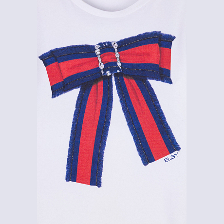 Джемпер Elsy – это идеальный выбор для маленьких модниц! Изготовленный из 95% хлопка и 5% эластана, он украшен красно-синим бантом с блестящими элементами. Белая основа с яркими акцентами создает стильный и комфортный образ. На фотографии видна аккуратная отделка банта и мягкая текстура ткани. Качество от итальянского бренда и внимание к деталям делают этот джемпер отличным выбором для вашего ребенка!