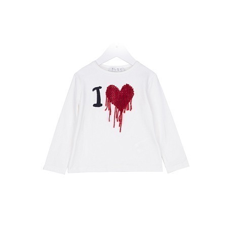 Джемпер Elsy – это идеальный выбор для девочек! Изготовленный из 95% хлопка и 5% эластана, он украшен принтом I love с красным сердцем. Нежная белая основа с ярким красным сердцем и черными буквами создает стильный и уютный образ. На фотографии видна аккуратная вышивка и мягкая текстура ткани. Качество от бренда из Китая и внимание к деталям делают этот джемпер отличным выбором для вашего ребенка!