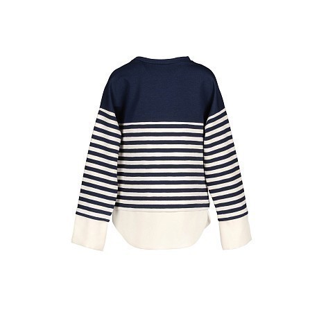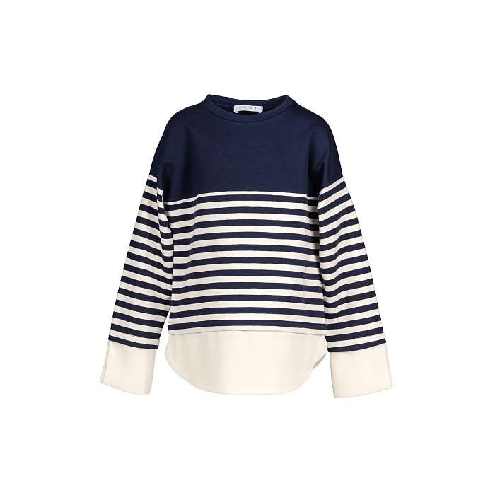 Джемпер для девочек Elsy – это идеальный вариант для вашего ребенка! Изготовлен из высококачественного хлопка с добавлением эластана, что обеспечивает мягкость и комфорт. Джемпер украшен стильными полосками в синем и белом цветах, которые создают модный и элегантный образ. На фотографии видна округлая горловина, длинные рукава и контрастная отделка из полиэстера. Качество от итальянского бренда Elsy делает этот джемпер отличным выбором для девочек всех возрастов!