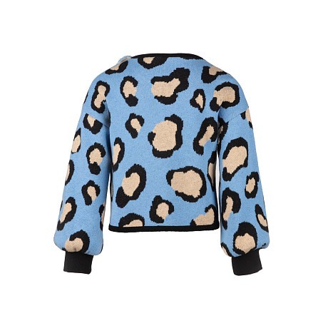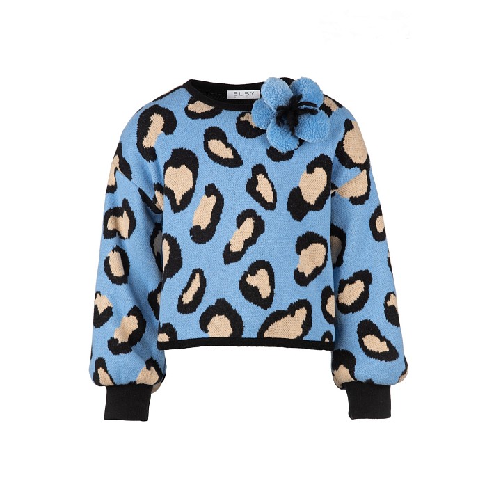 Джемпер Elsy – это идеальный выбор для стильных девочек! Изготовленный из 53% хлопка и 47% акрила, он украшен очаровательным леопардовым принтом и цветочком на груди. Нежный голубой фон с черными и бежевыми пятнами создает игривый и в то же время элегантный образ. На фотографии видна аккуратная черная окантовка по краю и мягкое воротничное кольцо. Качество от итальянского бренда и внимание к деталям делают этот джемпер отличным выбором для вашего ребенка!