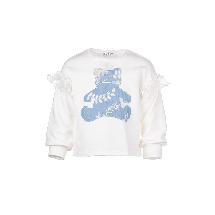 Джемпер Elsy – это идеальный выбор для девочек! Изготовленный из 95% хлопка и 5% эластана, он дополнен изысканной вышивкой медведя и цветочной отделкой. Мягкая и эластичная ткань обеспечивает комфорт и удобство при надевании. На фотографии видна аккуратная вышивка медведя с цветами и листьями на белом фоне, а также изысканная отделка рукавов. Качество от итальянского бренда Elsy и внимание к деталям делают этот джемпер отличным выбором для вашего ребенка!
