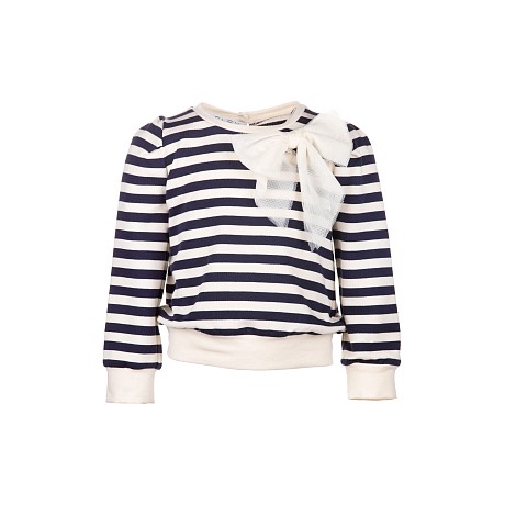Джемпер Elsy – это идеальный выбор для девочек! Изготовленный из 96% хлопка и 4% эластана, он украшен очаровательным принтом в полоску и белым бантом на шее. Мягкая и эластичная ткань обеспечивает комфорт и удобство, а принт в полоску придает модели стиль и элегантность. На фотографии видна аккуратная белая окантовка по краю и мягкая текстура ткани. Качество от бренда из Италии и внимание к деталям делают этот джемпер отличным выбором для вашего ребенка!