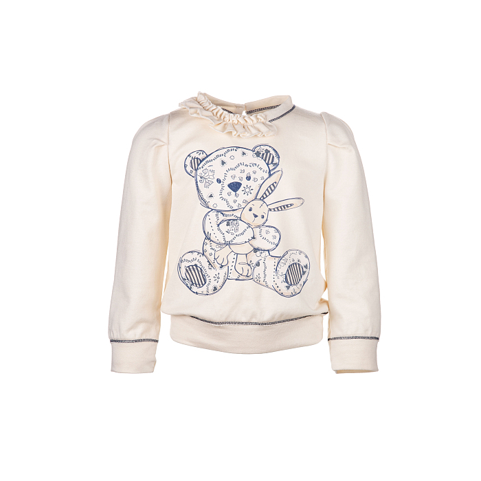 Джемпер Elsy – это идеальный выбор для девочек! Изготовленный из 95% хлопка и 5% эластана, он украшен очаровательным принтом медведя с рюшами на воротнике. Мягкая белая основа с голубым принтом медведя создает нежное и в то же время забавное настроение. На фотографиях видна аккуратная белая рюша на воротнике и мягкая текстура ткани. Качество от бренда из Италии и внимание к деталям делают этот джемпер отличным выбором для вашего ребенка!