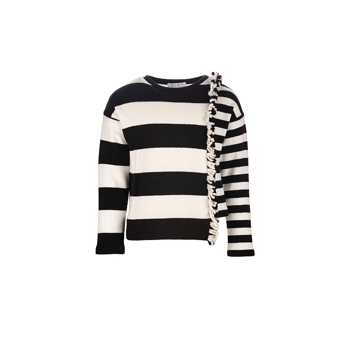 Джемпер Elsy – это идеальный выбор для маленьких модниц! Изготовленный из комбинации 48% хлопка, 48% акрила и 4% эластана, он идеально подойдет для девочек любого возраста. Джемпер украшен черно-белыми полосами и бахромой на рукаве, что делает его не только стильным, но и очень уютным. На фотографиях видна аккуратная бахрома на правом рукаве и мягкая текстура ткани. Качество от итальянского бренда Elsy и внимание к деталям делают этот джемпер отличным выбором для вашего ребенка!