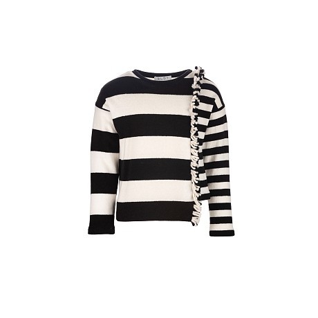 Джемпер для девочек с черно-белыми полосами и бахромой