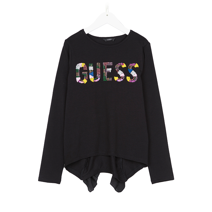 Джемпер Guess – это идеальный выбор для стильных девочек! Изготовленный из 95% хлопка и 5% эластана, он украшен блестящим логотипом Guess и контрастной окантовкой по краю. Нежная черная основа с яркими блестками создает яркий и модный образ. На фотографии видна аккуратная контрастная окантовка по краю и блестящий логотип Guess. Качество от бренда из Индии и внимание к деталям делают этот джемпер отличным выбором для вашего ребенка!