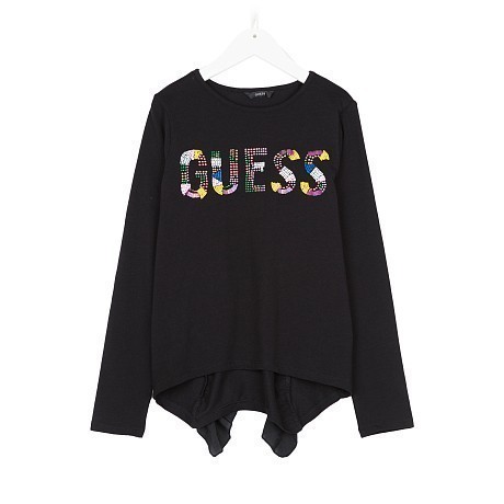 Джемпер Guess – это идеальный выбор для стильных девочек! Изготовленный из 95% хлопка и 5% эластана, он украшен блестящим логотипом Guess и контрастной окантовкой по краю. Нежная черная основа с яркими блестками создает яркий и модный образ. На фотографии видна аккуратная контрастная окантовка по краю и блестящий логотип Guess. Качество от бренда из Индии и внимание к деталям делают этот джемпер отличным выбором для вашего ребенка!