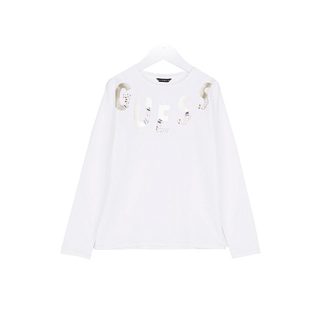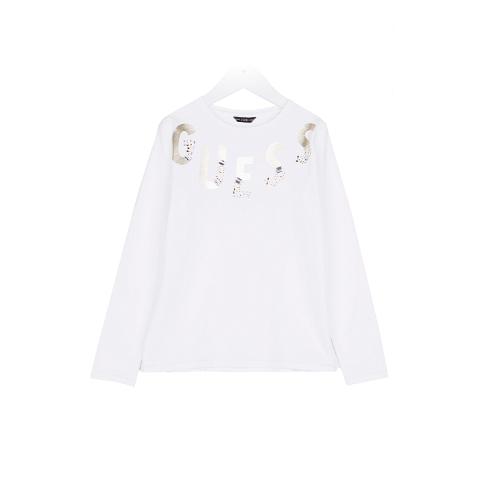 Джемпер Guess – это идеальный выбор для девочек! Изготовленный из 95% хлопка и 5% эластана, он украшен белым логотипом Guess. Нежная белая основа с ярким белым логотипом Guess создает стильный и комфортный образ. На фотографии видна аккуратная белая окантовка по краю и мягкая текстура ткани. Качество от бренда Guess и внимание к деталям делают эту одежду отличным выбором для вашего ребенка!