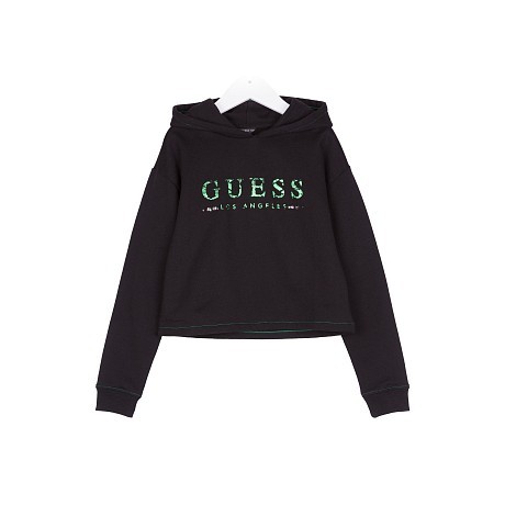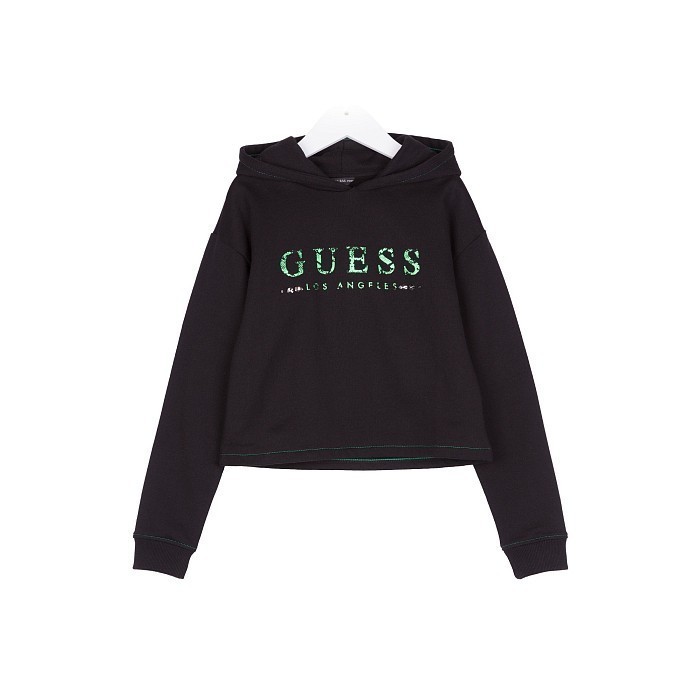 Джемпер Guess – это идеальный выбор для маленьких модниц! Изготовлен из 100% хлопка, он украшен зеленой вышивкой с логотипом Guess. Контрастная зеленая вышивка на черном фоне создает яркий и стильный образ. На фотографии виден капюшон, длинные рукава и контрастная зеленая окантовка по краю. Джемпер Guess – отличный выбор для вашего ребенка!