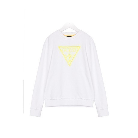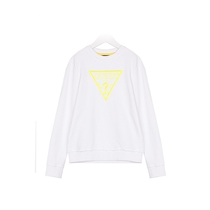- 🎨 Дизайн: желтый принт с логотипом Guess, круглый вырез горловины, длинные рукава