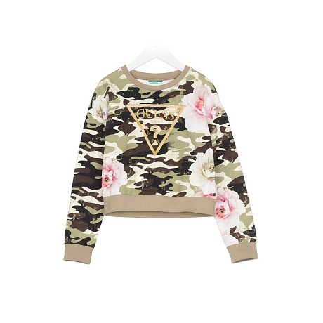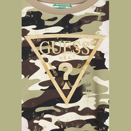 Джемпер Guess – это идеальный выбор для стильных девочек! Изготовленный из 95% хлопка и 5% других волокон, он украшен камуфляжным принтом и цветами. Нежный камуфляжный фон с розовыми цветами создает уникальный и модный образ. На фотографии видна аккуратная окантовка по краю и мягкая текстура ткани. Качество от бренда Guess и внимание к деталям делают этот джемпер отличным выбором для вашего ребенка!