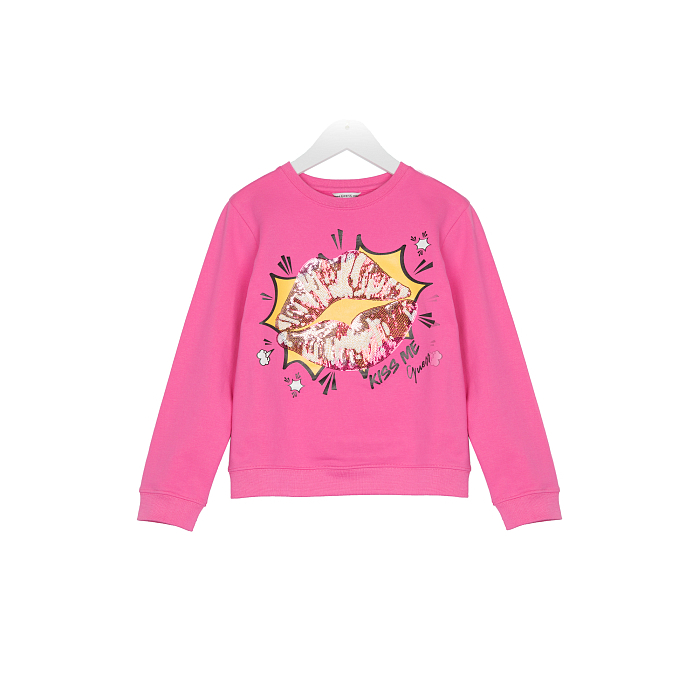 Джемпер Guess – это идеальный выбор для маленьких модниц! Изготовленный из 95% хлопка и 5% других волокон, он украшен ярким принтом с блестящими губами и надписью "Kiss Me Queen". Нежный розовый цвет и блестящие элементы создают яркий и запоминающийся образ. На фотографии видна аккуратная окантовка по краю и мягкая текстура ткани. Качество от бренда из США и внимание к деталям делают этот джемпер отличным выбором для вашего ребенка!