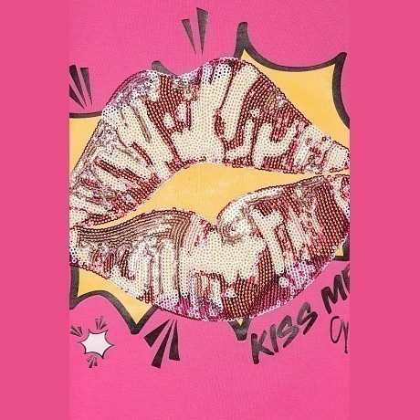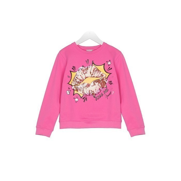 Джемпер Guess – это идеальный выбор для маленьких модниц! Изготовленный из 95% хлопка и 5% других волокон, он украшен ярким принтом с блестящими губами и надписью "Kiss Me Queen". Нежный розовый цвет и блестящие элементы создают яркий и запоминающийся образ. На фотографии видна аккуратная окантовка по краю и мягкая текстура ткани. Качество от бренда из США и внимание к деталям делают этот джемпер отличным выбором для вашего ребенка!