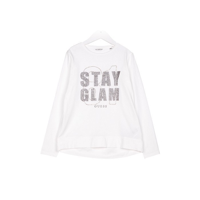Джемпер Guess для девочек – это идеальный выбор для стильных модниц! Изготовленный из 95% хлопка и 5% эластана, он украшен ярким принтом Stay Glam. Джемпер с длинными рукавами и круглым вырезом горловины идеально подойдет для девочек от 7 до 14 лет. На фотографии видна яркая надпись Stay Glam с блестками, а также мягкая и приятная на ощупь ткань. Качество от бренда Guess и внимание к деталям делают этот джемпер отличным выбором для вашего ребенка!