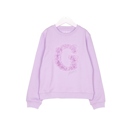 Джемпер Guess – это идеальный выбор для девочек! Изготовленный из 100% хлопка, он украшен очаровательным цветочным принтом и логотипом Guess. Нежная лиловая основа с яркими цветами и белым логотипом создает яркий и стильный образ. На фотографии видна аккуратная отделка по краю и мягкая текстура ткани. Качество от бренда Guess и внимание к деталям делают этот джемпер отличным выбором для вашего ребенка!