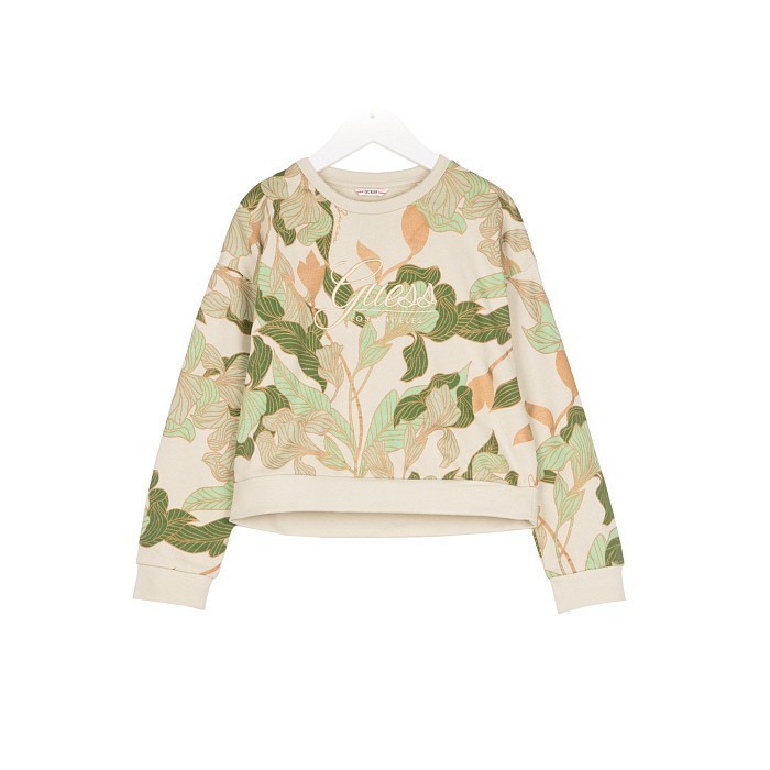 Джемпер Guess – это идеальный выбор для девочек! Изготовленный из 100% хлопка, он украшен изысканным цветочным принтом и логотипом Guess. Нежная ткань с яркими зелеными и коричневыми цветами создает уютное и стильное настроение. На фотографии видна аккуратная окантовка по краю и мягкая текстура ткани. Качество от бренда из США и внимание к деталям делают этот джемпер отличным выбором для вашего ребенка!