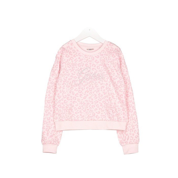 Джемпер Guess – это идеальный выбор для девочек! Изготовленный из 100% хлопка, он украшен элегантным леопардовым принтом и брендовым логотипом. Нежный розовый цвет с леопардовым принтом создает стильный и комфортный образ. На фотографии видна аккуратная окантовка по краю и мягкая текстура ткани. Качество от бренда Guess и внимание к деталям делают эту модель отличным выбором для вашего ребенка!