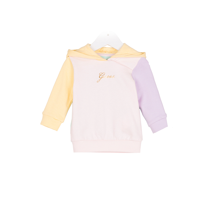 Джемпер Guess – это идеальный выбор для стильных девочек! Изготовленный из 100% хлопка, он украшен яркими рукавами в нежных оттенках желтого и фиолетового. Нежная белая основа с контрастными рукавами создает яркий и модный образ. На фотографиях видна аккуратная отделка края рукавов и мягкая текстура ткани. Качество от бренда Guess и внимание к деталям делают этот джемпер отличным выбором для вашего ребенка!