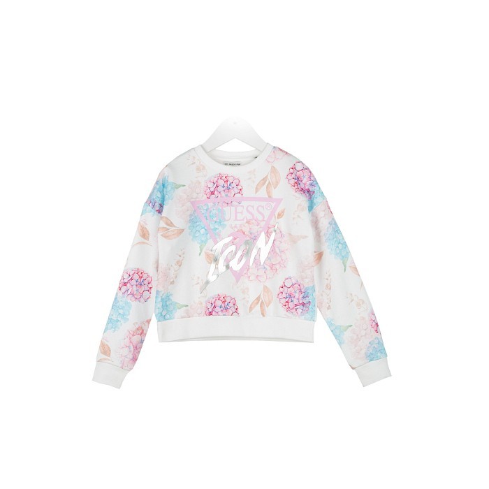 Джемпер Guess – это идеальный выбор для маленьких модниц! Изготовленный из 100% хлопка, он украшен нежным цветочным принтом и логотипом Guess. Джемпер с круглым вырезом горловины и длинными рукавами идеально подойдет для девочек. На фотографии видна аккуратная цветочная расцветка с логотипом Guess в центре, а также мягкая текстура ткани. Качество от бренда Guess и внимание к деталям делают этот джемпер отличным выбором для вашего ребенка!