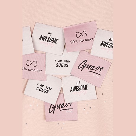 - 🎨 Дизайн: надписи "I AM VERY GUESS", "99% dreamer", "BE AWESOME" и "Guess" на светло-розовом фоне