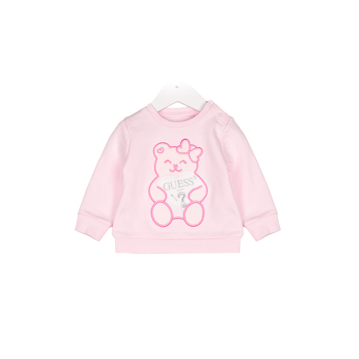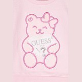 Джемпер Guess – это идеальный выбор для девочек! Изготовленный из 95% хлопка и 5% эластана, он украшен очаровательным принтом медведя с бантиком на сердце. Бледно-розовый цвет создает нежное и уютное настроение. На фотографиях видна аккуратная вышивка медведя с бантиком и мягкая текстура ткани. Качество от бренда из США и внимание к деталям делают этот джемпер отличным выбором для вашего ребенка!