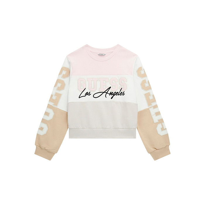 Джемпер Guess для девочек – это идеальный выбор для стильных и комфортных образов! Изготовлен из 100% хлопка, он украшен контрастными полосками и принтом Los Angeles. Джемпер имеет округлый вырез горловины, свободный крой и эластичные манжеты на рукавах. На фотографиях видны яркие контрастные полосы, принт Los Angeles и эластичные манжеты на рукавах. Качество от бренда Guess и внимание к деталям делают этот джемпер отличным выбором для вашего ребенка!