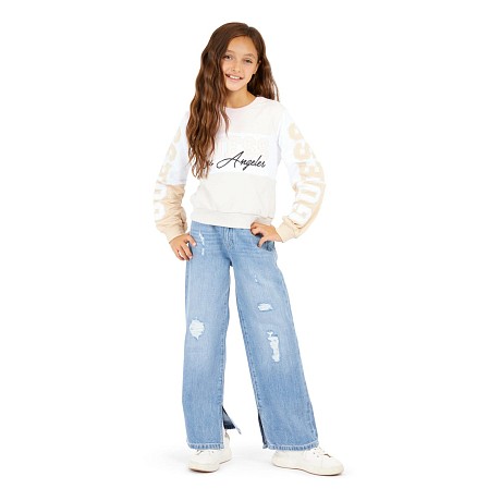 Джемпер Guess для девочек – это идеальный выбор для стильных и комфортных образов! Изготовлен из 100% хлопка, он украшен контрастными полосками и принтом Los Angeles. Джемпер имеет округлый вырез горловины, свободный крой и эластичные манжеты на рукавах. На фотографиях видны яркие контрастные полосы, принт Los Angeles и эластичные манжеты на рукавах. Качество от бренда Guess и внимание к деталям делают этот джемпер отличным выбором для вашего ребенка!