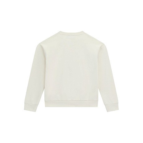 Джемпер Guess – это идеальный выбор для стильных девочек! Изготовлен из 100% хлопка, он украшен элегантным принтом с надписью 1981 и логотипом Guess. Нежная белая основа с золотистым принтом создает стильный и современный образ. На фотографиях видна аккуратная вышивка и мягкая текстура ткани. Качество от бренда из США и внимание к деталям делают этот джемпер отличным выбором для вашего ребенка!