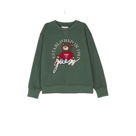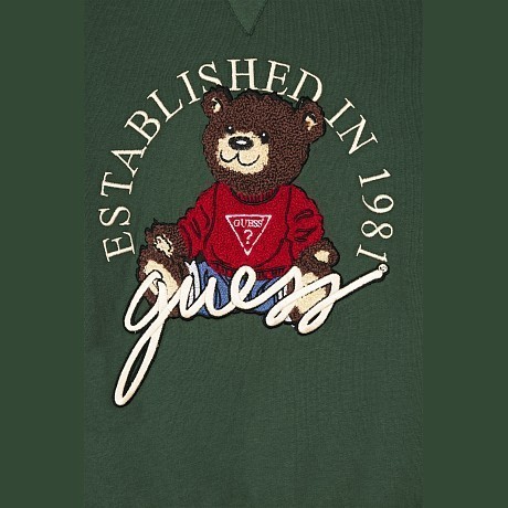 Джемпер Guess – это идеальный выбор для девочек! Изготовленный из 100% хлопка, он украшен очаровательным принтом медведя в красной футболке и надписью Established in 1981. Темно-зеленая основа с ярким принтом создает стильный и комфортный образ. На фотографиях видна аккуратная вышивка медведя и надпись, а также мягкая текстура ткани. Качество от бренда Guess и внимание к деталям делают этот джемпер отличным выбором для вашего ребенка!