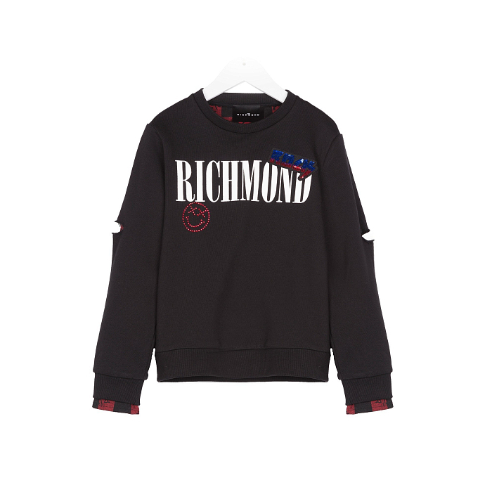 Джемпер John Richmond – это идеальный выбор для девочек! Изготовлен из 100% хлопка, он украшен крупным принтом с надписью Richmond и красочными деталями. Джемпер с круглым вырезом горловины и длинными рукавами идеально подойдет для теплых дней. На фотографии видна яркая надпись Richmond, красные детали и контрастная окантовка по краю рукавов. Качество от бренда John Richmond делает этот джемпер отличным выбором для вашего ребенка!