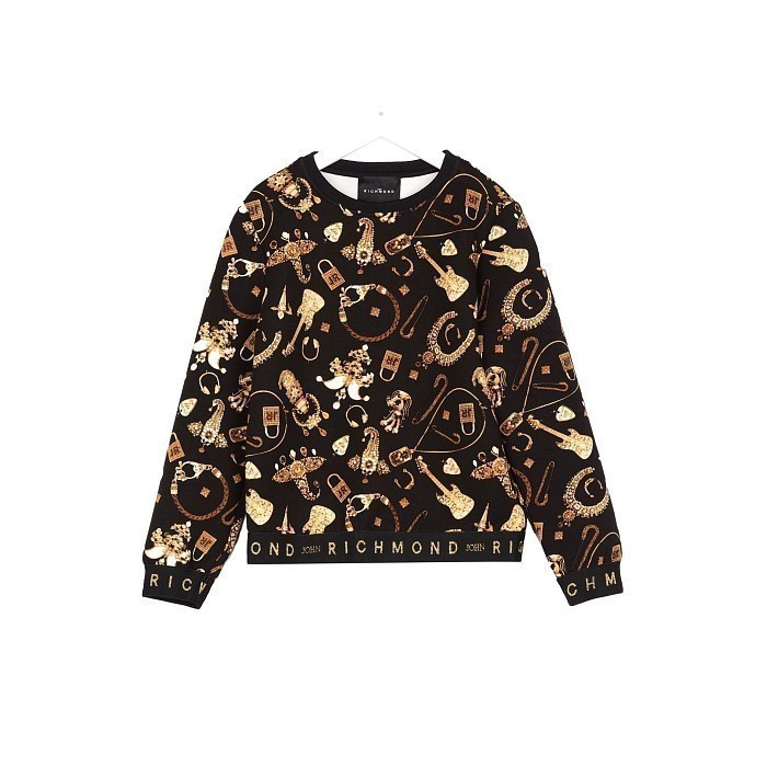Джемпер John Richmond – это идеальный выбор для стильных девочек! Изготовленный из комбинации 80% вискозы, 12% полиамида и 8% эластана, он украшен модным принтом из золотых аксессуаров и музыкальных инструментов. Джемпер идеально подойдет для девочек любого возраста, так как его стильный дизайн и качественный состав делают его универсальным и модным выбором. На фотографиях видны золотые аксессуары, такие как браслеты, серьги, часы, гитары и другие элементы, которые создают уникальный и стильный образ. Джемпер с круглым вырезом горловины и длинными рукавами обеспечивает комфорт и удобство при носке. Качество от бренда John Richmond из Великобритании делает этот джемпер отличным выбором для вашего ребенка!