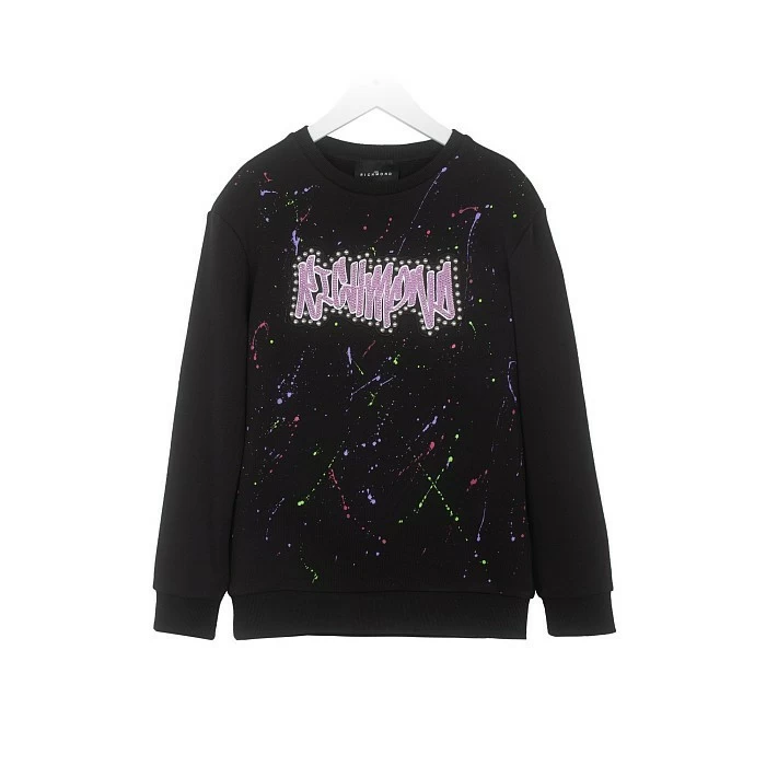 Джемпер John Richmond – это идеальный выбор для стильных девочек! Изготовленный из 100% хлопка, он украшен ярким принтом и блестками, создавая эффект разноцветных брызг краски. На передней части джемпера видна крупная надпись "RICHMOND" с блестками, а также разноцветные брызги краски, которые придают изделию яркий и модный вид. Нежная ткань и удобная посадка делают этот джемпер отличным выбором для вашего ребенка!