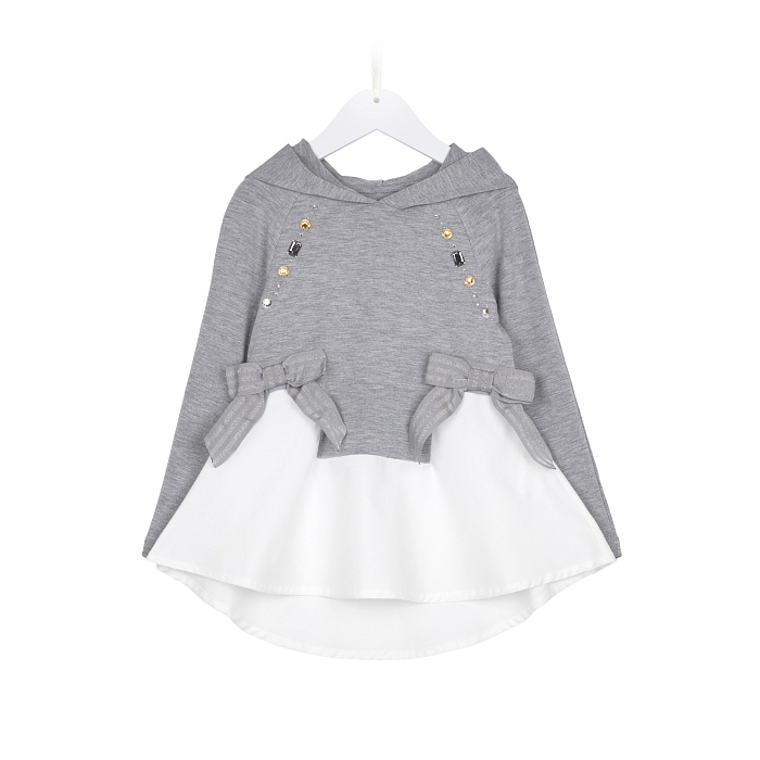 Джемпер для девочек с серыми бантиками и бусинами