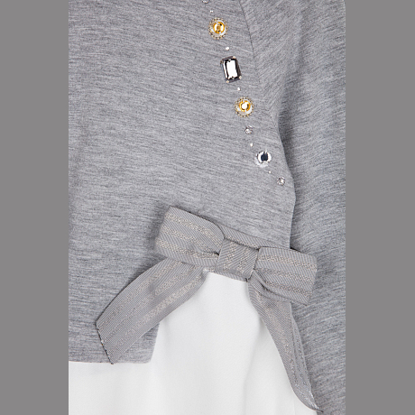 Джемпер для девочек с серыми бантиками и бусинами