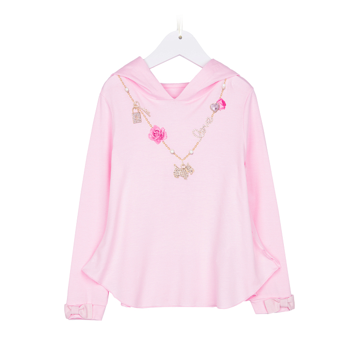 Джемпер для девочек Lapin House – это идеальный выбор для стильного и комфортного образа! Изготовленный из 95% вискозы и 5% эластана, он украшен очаровательным принтом розы и сердечек. Нежная розовая основа с яркими акцентами создает игривое и в то же время уютное настроение. На фотографии видна аккуратная розовая роза, сердечки и бусина на шее, а также мягкая текстура ткани. Качество от бренда из Греции и внимание к деталям делают этот джемпер отличным выбором для вашего ребенка!