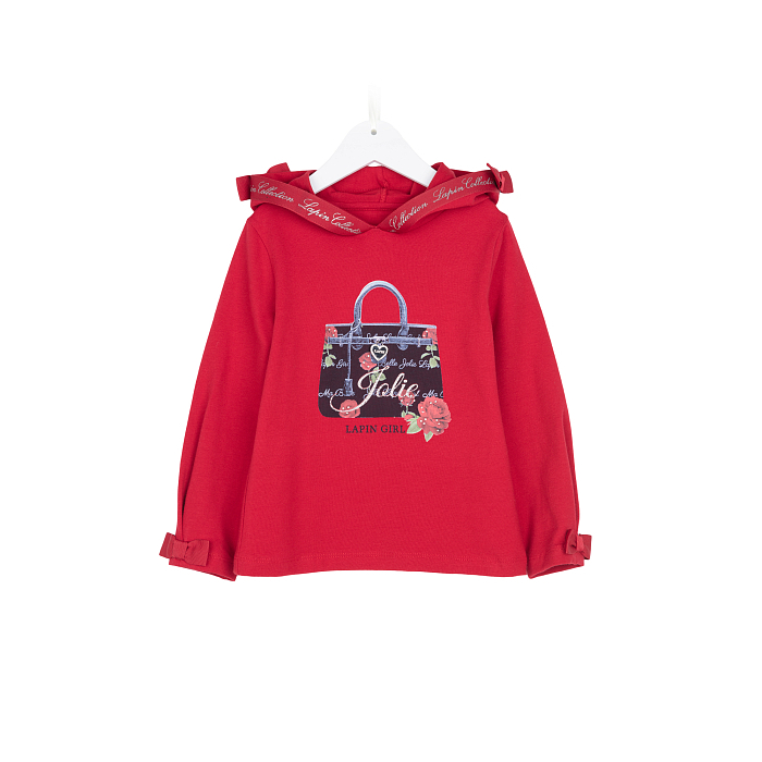 Красный джемпер Lapin House – это идеальный выбор для маленьких модниц! Изготовлен из 92% хлопка и 8% эластана, он украшен очаровательным принтом сумки с розами и надписью "Jolie". Нежная красная основа с ярким принтом создает яркий и веселый образ. На фотографии видна аккуратная красная окантовка по краю и мягкая текстура ткани. Качество от бренда из Греции и внимание к деталям делают этот джемпер отличным выбором для вашего ребенка!