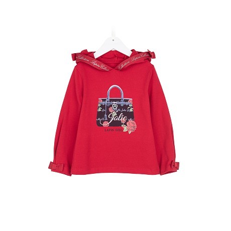 Красный джемпер Lapin House – это идеальный выбор для маленьких модниц! Изготовлен из 92% хлопка и 8% эластана, он украшен очаровательным принтом сумки с розами и надписью "Jolie". Нежная красная основа с ярким принтом создает яркий и веселый образ. На фотографии видна аккуратная красная окантовка по краю и мягкая текстура ткани. Качество от бренда из Греции и внимание к деталям делают этот джемпер отличным выбором для вашего ребенка!