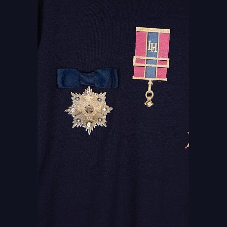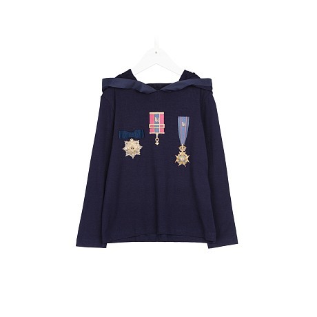 Джемпер для девочек Lapin House – это идеальный выбор для стильных модниц! Изготовлен из высококачественной вискозы с добавлением эластана, он украшен элегантными медалями и бантами. Нежная ткань и аккуратные детали создают неповторимый образ. На фотографиях видны аккуратные бордовые банты, золотые медали и элегантные броши. Качество от бренда из Греции и внимание к деталям делают этот джемпер отличным выбором для вашего ребенка!