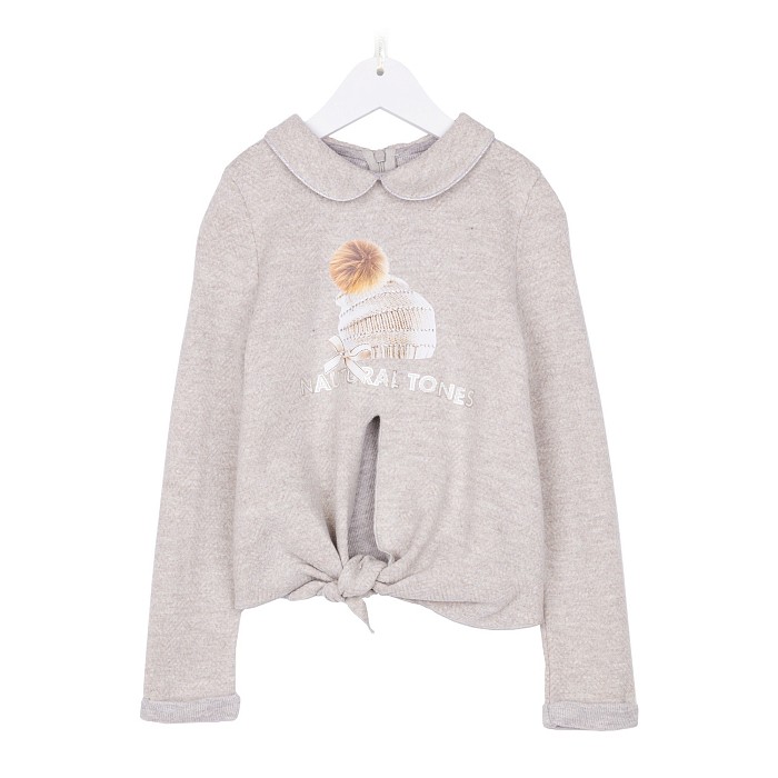 Джемпер Lapin House – это идеальный выбор для маленьких модниц! Изготовленный из комбинации 40% хлопка, 34% акрила, 24% вискозы и 2% полиамида, он украшен принтом шапки и надписью 'Natural Tones'. Нежный серый джемпер с аккуратной воротничком и узлом на талии создает комфорт и стиль. На фотографии видна мягкая текстура ткани, аккуратные швы и элегантный дизайн. Качество от бренда из Греции и внимание к деталям делают этот джемпер отличным выбором для вашего ребенка!