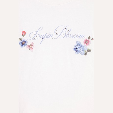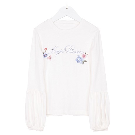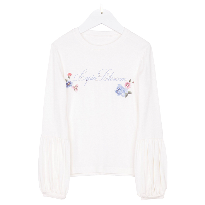 Джемпер Lapin House – это идеальный выбор для девочек! Изготовленный из 95% вискозы и 5% эластана, он украшен изящным цветочным принтом с нежными розовыми и синими цветами. Элегантный белый джемпер с пышными рукавами и круглым вырезом горловины создает нежное и уютное настроение. На фотографии видна аккуратная вышивка цветов и надпись "Lapin Blossom" в центре. Качество от бренда из Греции и внимание к деталям делают этот джемпер отличным выбором для вашего ребенка!