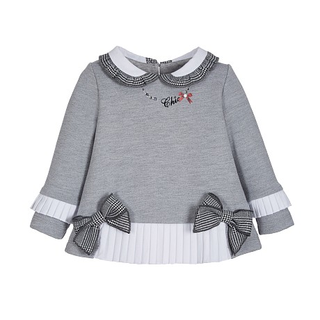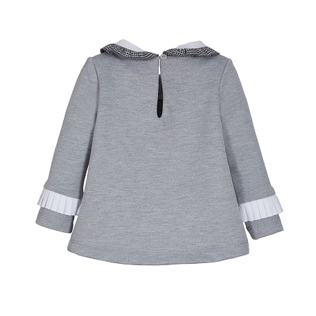 Джемпер для девочек Lapin House – это идеальный выбор для маленьких модниц! Изготовленный из 58% вискозы, 22% хлопка, 18% полиэстера и 2% эластана, он украшен очаровательными клетчатыми бантиками и белым воротничком. Нежная серая основа с яркими клетчатыми бантиками создает стильный и комфортный наряд. На фотографиях видны аккуратные клетчатые банты на груди и белый воротничок. Качество от бренда из Греции и внимание к деталям делают этот джемпер отличным выбором для вашего ребенка!