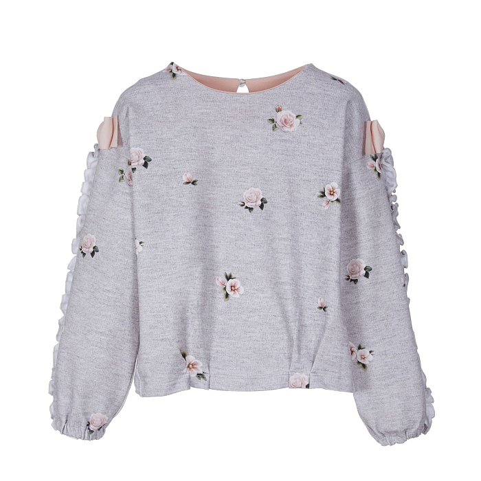 Джемпер для девочек Lapin House – это идеальный выбор для вашего маленькой модницы! Изготовленный из 85% хлопка, 10% вискозы и 5% эластана, он украшен нежным цветочным принтом и элегантными деталями. Нежно-серый джемпер с розовыми цветами и белыми кружевными вставками на рукавах создает нежное и романтичное настроение. На фотографии видны аккуратные кружевные вставки на рукавах и нежные розовые цветы на сером фоне. Качество от бренда из Греции и внимание к деталям делают этот джемпер отличным выбором для вашего ребенка!