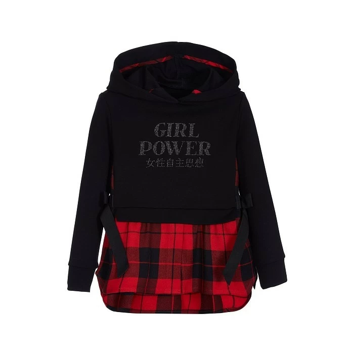 - 🎨 Дизайн: принт Girl Power, клетчатая юбка, мягкая текстура ткани
