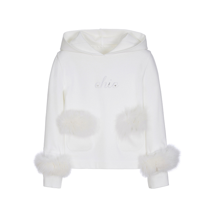 Белый джемпер для девочек с меховыми манжетами и принтом