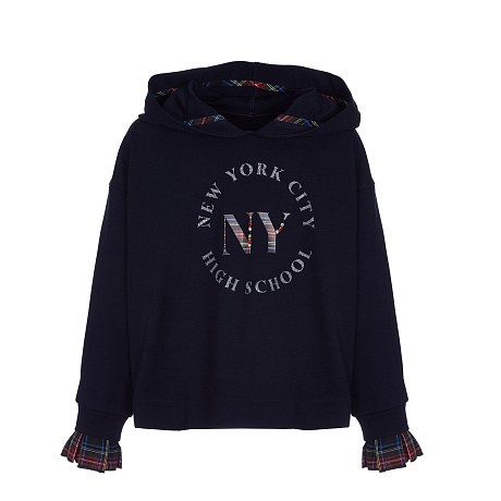 Джемпер для девочек Lapin House – это идеальный выбор для вашего ребенка! Изготовленный из комбинации вискозы, полиэстера, хлопка и эластана, он обеспечивает комфорт и мягкость. Принт New York City High School придает модели оригинальности и модного штриха. На фотографии видна яркая надпись "NY" в центре, а также контрастная окантовка на воротнике и рукавах. Качество от бренда из Греции делает этот джемпер отличным выбором для вашего ребенка!