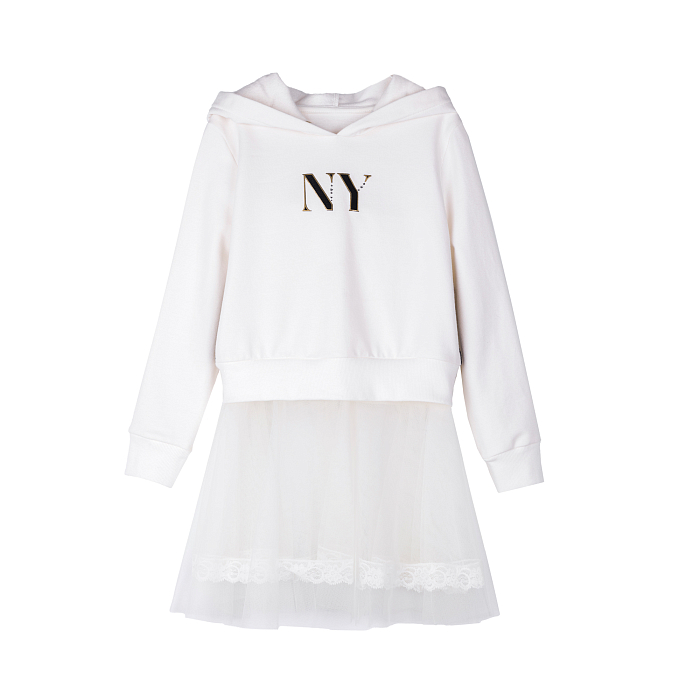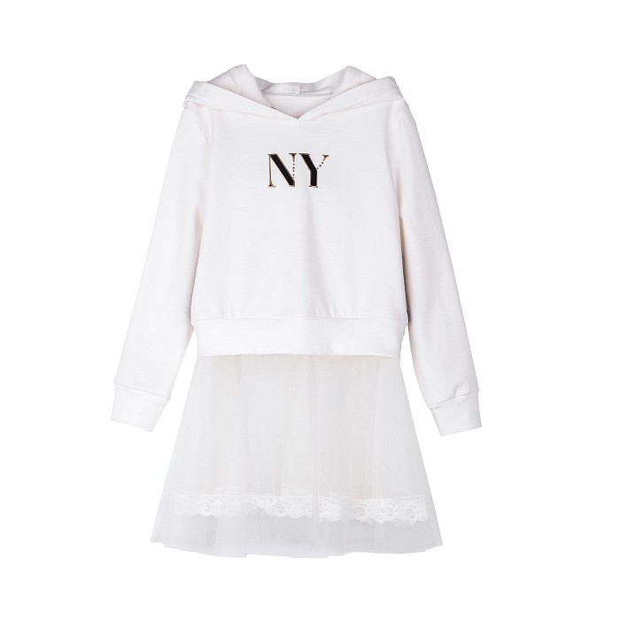 - 🎨 Дизайн: белое кружево, принт "NY", эластичная резинка на рукавах