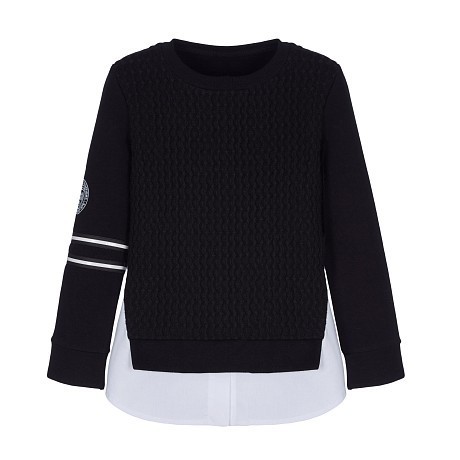 Черный джемпер для девочек с белыми полосками на рукавах