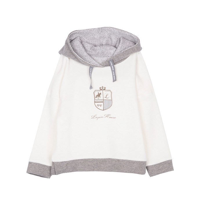 Джемпер Lapin House – это идеальный выбор для маленьких модниц! Изготовленный из комбинации 80% хлопка, 10% полиамид, 8% акрила и 2% полиэстера, он украшен очаровательным принтом лошади и герба. Нежный белый цвет с серой окантовкой и аккуратной вышивкой создает элегантный и комфортный образ. На фотографии видна аккуратная серая окантовка по краю и мягкая текстура ткани. Качество от бренда из Греции и внимание к деталям делают этот джемпер отличным выбором для вашего ребенка!