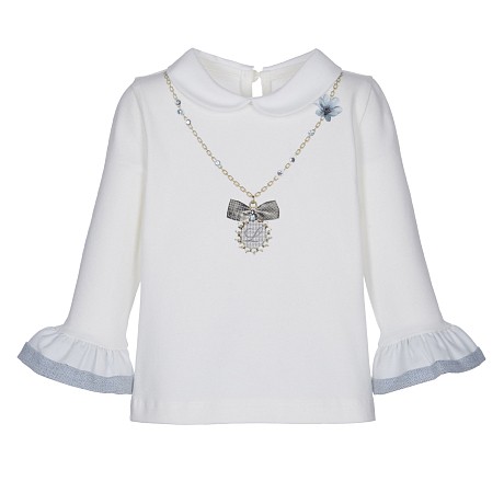 Белый джемпер для девочек Lapin House с принтом бабочки и кружевом - доставка СДЭК по всей России - 202E2392/20-02